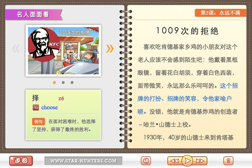 很多本地学生认为学习华文很难、很没意思。其实,那只是因为传统的学习方法不能引起学生的兴趣!寻宝智慧星为这一困境画上了句号。为什么?因为它是一个游戏。在这个惊险刺激的寻宝游戏中,你会发掘一张张的地图,通过一道道的难关,阅读一个个的故事,然后收集星星,获得奖品!我们为你量身设计了超过200个丰富多彩的故事,就在“寻宝智慧星”。