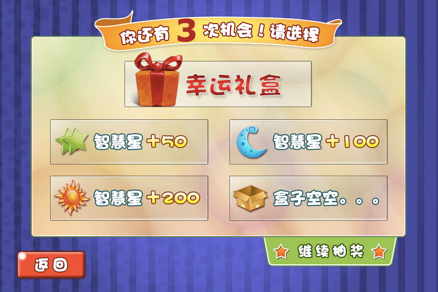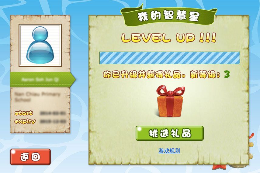 寻宝游戏怎能没有宝贝?不错,只要你是一个勤劳智慧的寻宝者,就一定能得到我们送出的精美礼品!虽不价值连城,却代表了你华文学习的里程碑,也是我们对你的鼓励!收集越多智慧星,就能得到越多宝贝。